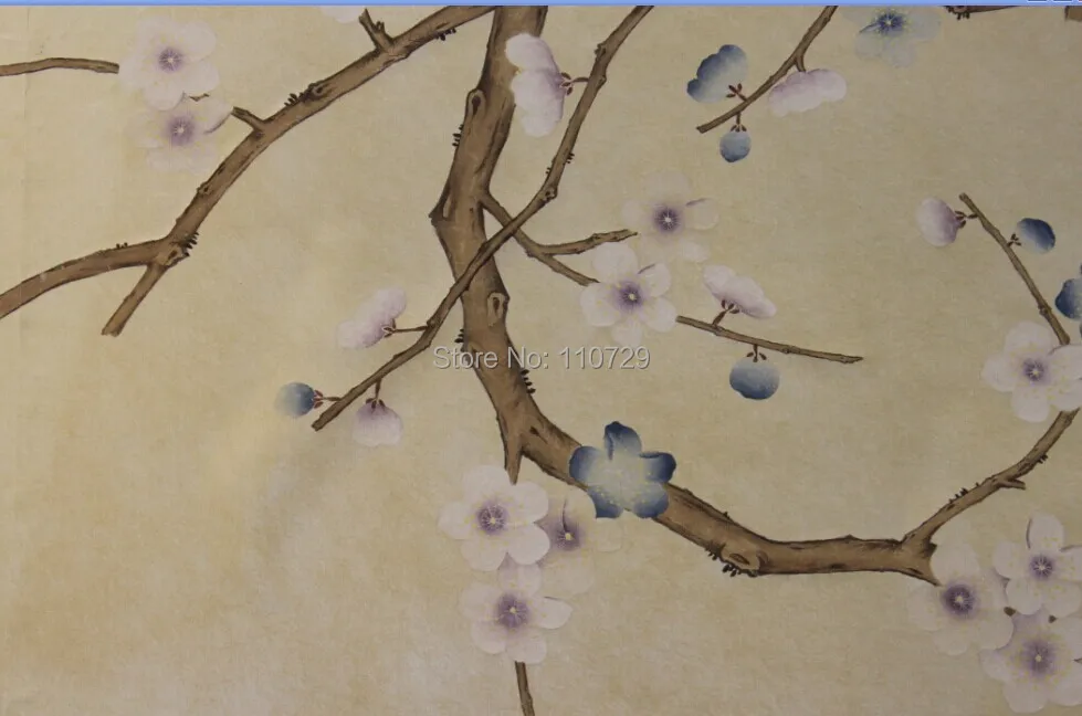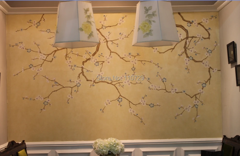 Hand-painted non-woven with silk wallpaper painting plum blossom wall cover sticker