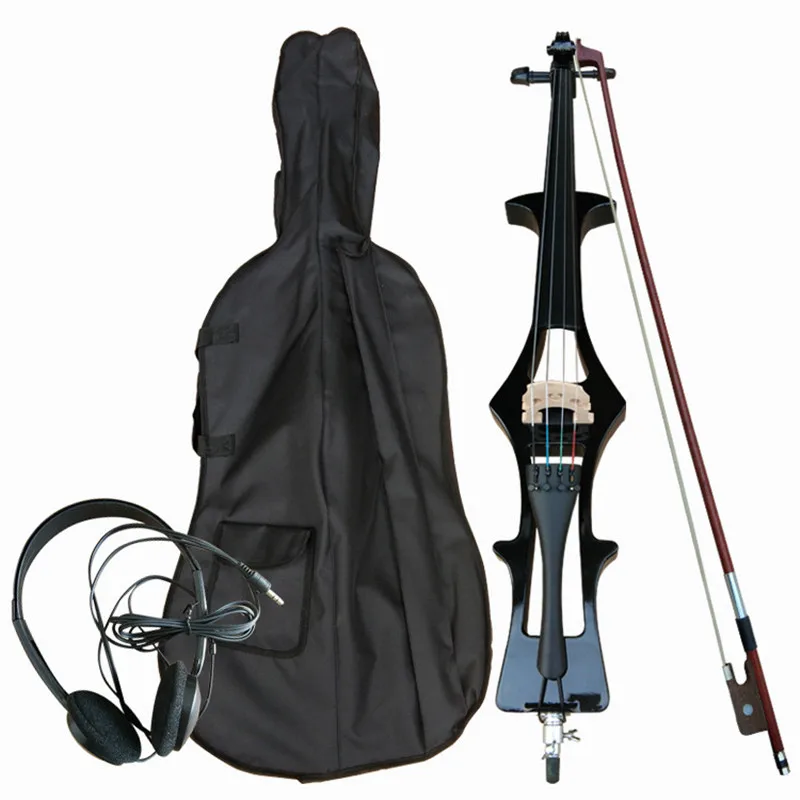 ZONAEL Electric Cello 4/4 Cool Handmade Black Electronic Cello Electric Cello Ultra Long Mount Bass