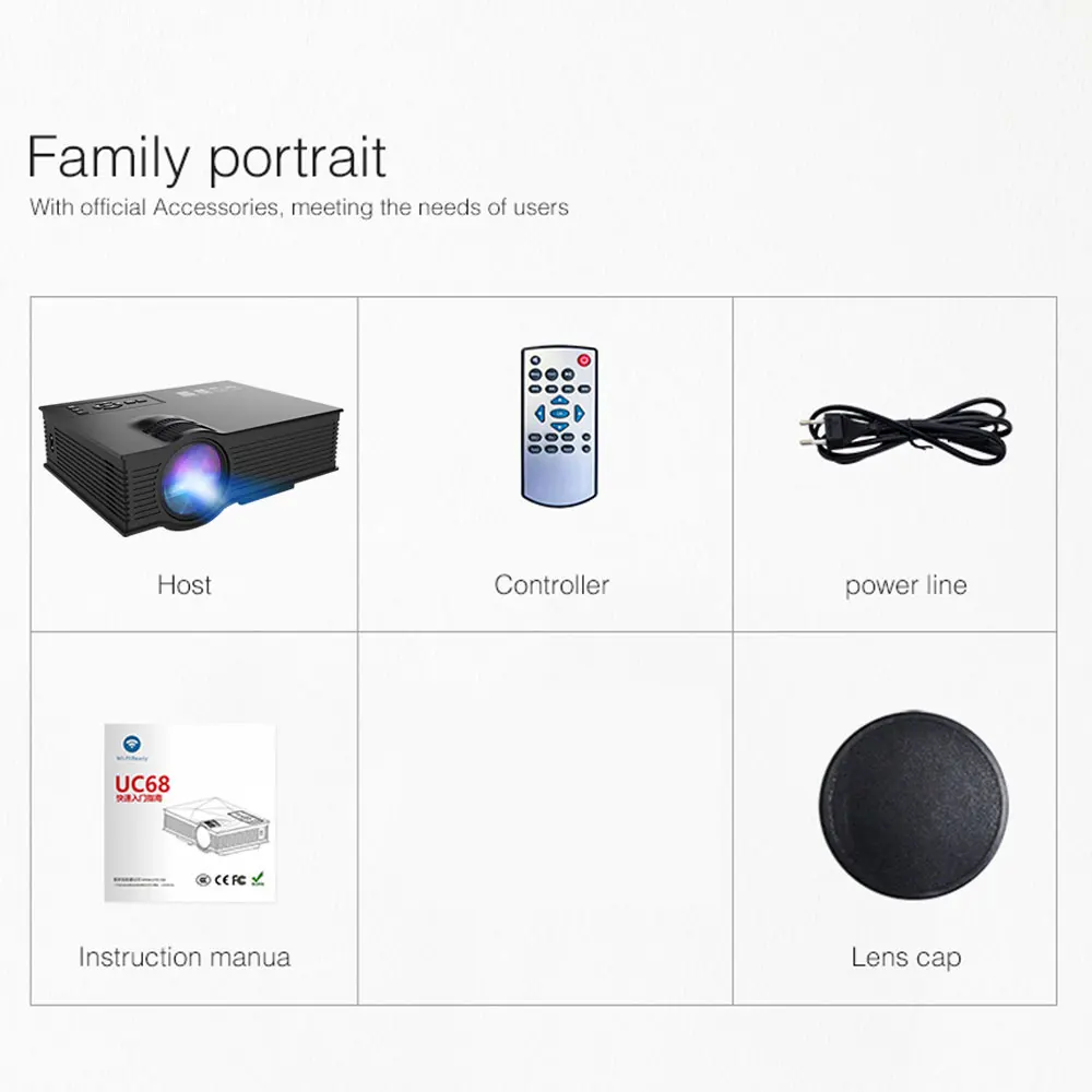 Hot Sale Uc68 Theater Multimedia Projector 80 Ansi Hd 1080P Video Built-In Hifi Speaker Home Entertainment S