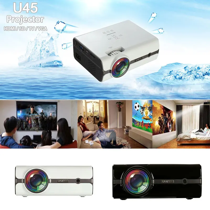 Uhappy U45 Mini LED Projector Home Theater Portable High Brightness Home Cinema Game TV HDMI USB